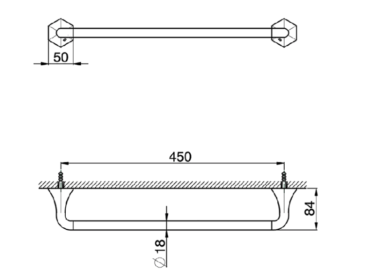 Полотенцедержатель, Cisal, Chérie, одинарный, ширина, мм-450, глубина, мм-84, цвет-Chrome Полотенцедержатель, Cisal, Chérie, шг 450*84, цвет-Chrome