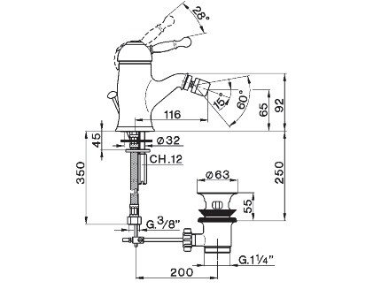 Смеситель для биде, Cisal, Arcana Royal, тип открывания воды-однорычажный, тип регулирования воды-керамический картридж, отверстия для монтажа-1, высота, мм-92, вынос излива, мм-116, донный клапан-есть, тип подводки-гибкая, стандарт подвода воды-3/8", цвет-Old Bronze Смеситель для биде, Cisal, Arcana Royal, цвет-Old Bronze