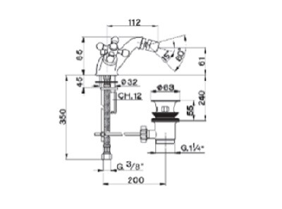 Смеситель для биде, Cisal, Arcana Toscana, тип открывания воды-двухвентильный, тип регулирования воды-керамическая кран-букса, отверстия для монтажа-1, высота, мм-85, вынос излива, мм-112, материал ручки-керамика, цвет ручки-белый, донный клапан-есть, тип подводки-гибкая, стандарт подвода воды-3/8", цвет-Old Bronze Смеситель для биде, Cisal, Arcana Toscana, цвет-Old Bronze