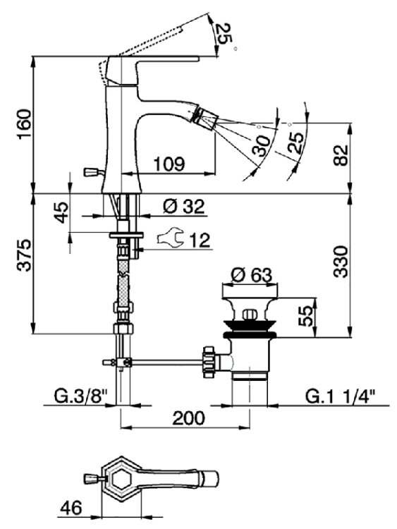 Смеситель для биде, Cisal, Chérie, тип открывания воды-однорычажный, тип регулирования воды-керамический картридж, отверстия для монтажа-1, высота, мм-160, вынос излива, мм-109, донный клапан-есть, тип подводки-гибкая, стандарт подвода воды-3/8", цвет-Gold/Night Black Смеситель для биде, Cisal, Chérie, цвет-Gold/Night Black