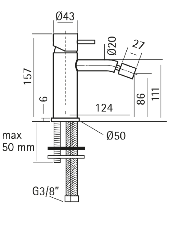 Смеситель для биде, Cisal, Xion, тип открывания воды-однорычажный, тип регулирования воды-керамический картридж, отверстия для монтажа-1, высота, мм-157, вынос излива, мм-124, тип подводки-гибкая, стандарт подвода воды-3/8", цвет-Brushed Stainless Steel Смеситель для биде, Cisal, Xion, цвет-Brushed Stainless Steel