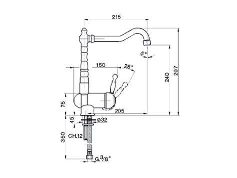 Смеситель для кухни, Cisal, Arcana Empress, тип открывания воды-однорычажный, отверстия для монтажа-1, высота, мм-288, вынос излива, мм-215, цвет-хром/керамика Смеситель для кухни, Cisal, Arcana Empress, цвет-хром/керамика