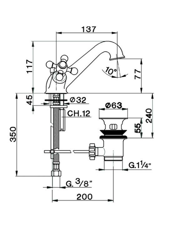 Смеситель для раковины, Cisal, Arcana Ceramic, тип открывания воды-двухвентильный, отверстия для монтажа-1, высота, мм-117, вынос излива, мм-137, цвет-Chrome Смеситель для раковины, Cisal, Arcana Ceramic, цвет-Chrome