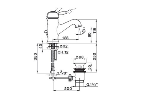 Смеситель для раковины, Cisal, Arcana Empress, тип открывания воды-однорычажный, тип установки-на раковину, отверстия для монтажа-1, вынос излива, мм-128, донный клапан-есть, цвет-Chrome Смеситель для раковины, Cisal, Arcana Empress, цвет-Chrome