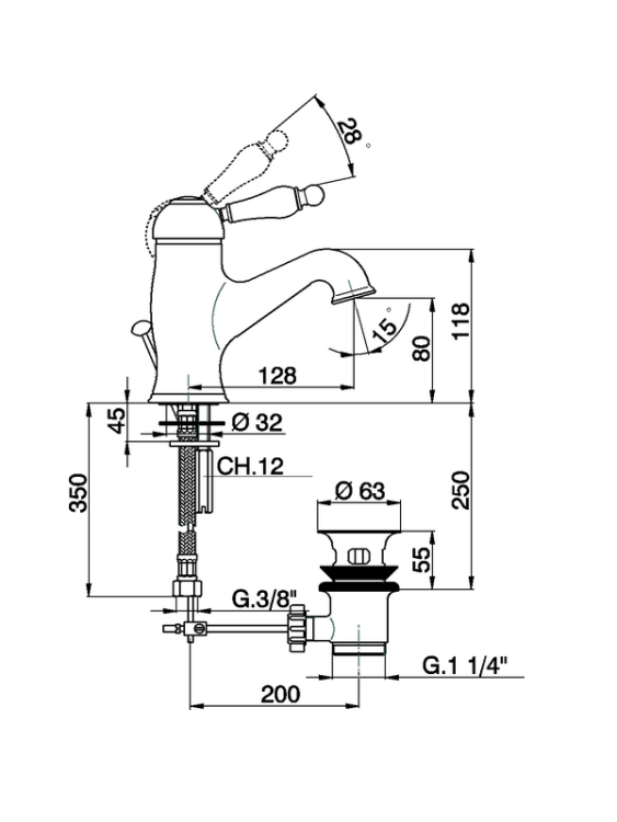 Смеситель для раковины, Cisal, Arcana Empress, тип открывания воды-однорычажный, отверстия для монтажа-1, вынос излива, мм-128, донный клапан-есть, цвет-Gold Смеситель для раковины, Cisal, Arcana Empress, цвет-Gold