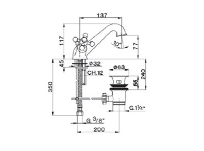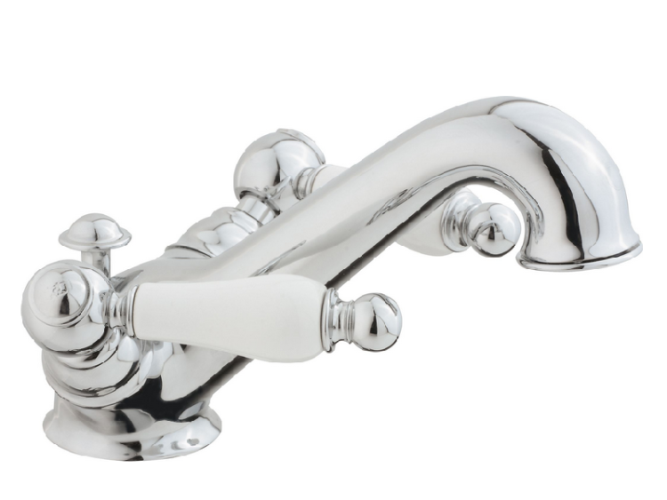 Смеситель для раковины, Cisal, Arcana Toscana, тип открывания воды-двухрычажный, тип установки-на раковину, отверстия для монтажа-1, высота, мм-117, вынос излива, мм-137, донный клапан-есть, цвет-хром/керамика Смеситель для раковины, Cisal, Arcana Toscana, цвет-хром/керамика