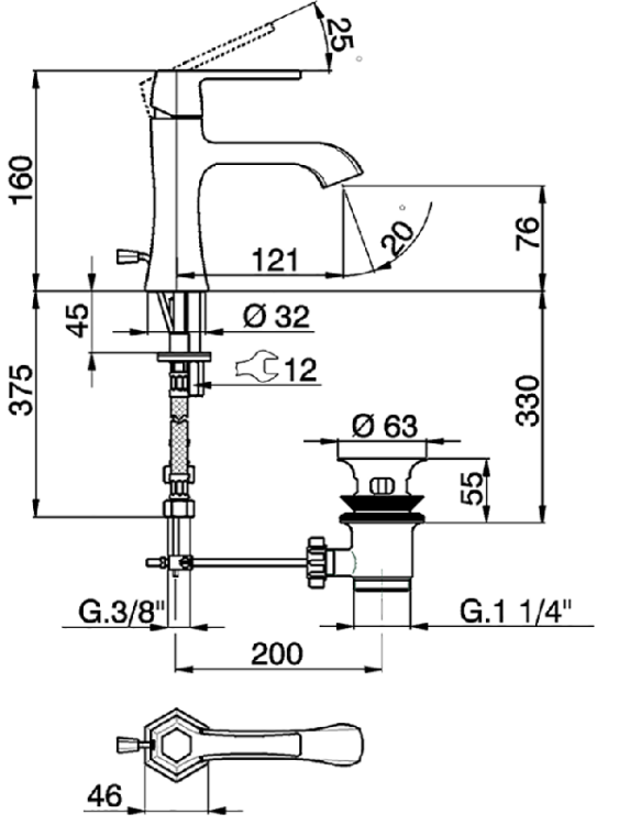 Смеситель для раковины, Cisal, Chérie, тип открывания воды-однорычажный, тип установки-на раковину, отверстия для монтажа-1, высота, мм-160, вынос излива, мм-121, донный клапан-есть, тип подводки-гибкая, стандарт подвода воды-3/8", внутренняя часть-есть, цвет-Gold/Night Black Смеситель для раковины, Cisal, Chérie, цвет-Gold/Night Black