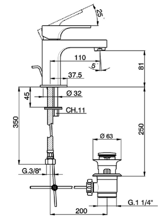 Смеситель для раковины, Cisal, Cubic, тип открывания воды-однорычажный, отверстия для монтажа-1, вынос излива, мм-110, донный клапан-есть, тип подводки-гибкая, стандарт подвода воды-3/8", цвет-Chrome Смеситель для раковины, Cisal, Cubic, цвет-Chrome