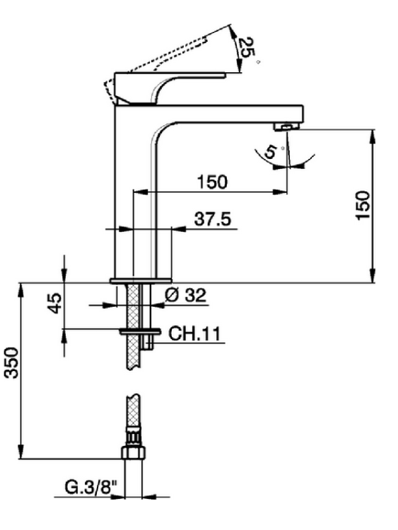 Смеситель для раковины, Cisal, Cubic, тип открывания воды-однорычажный, отверстия для монтажа-1, вынос излива, мм-150, стандарт подвода воды-3/8", цвет-Chrome Смеситель для раковины, Cisal, Cubic, цвет-Chrome