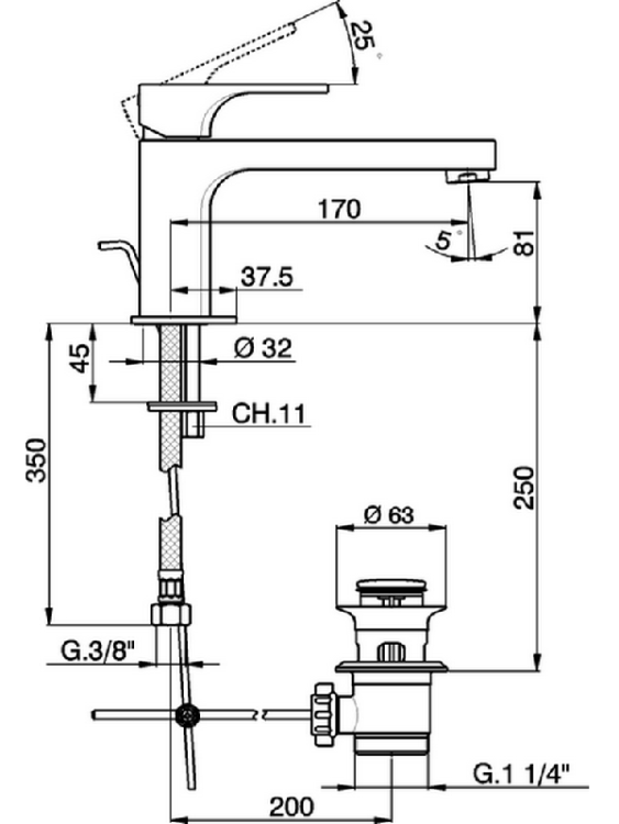 Смеситель для раковины, Cisal, Cubic, тип открывания воды-однорычажный, отверстия для монтажа-1, вынос излива, мм-170, донный клапан-есть, цвет-Chrome Смеситель для раковины, Cisal, Cubic, цвет-Chrome