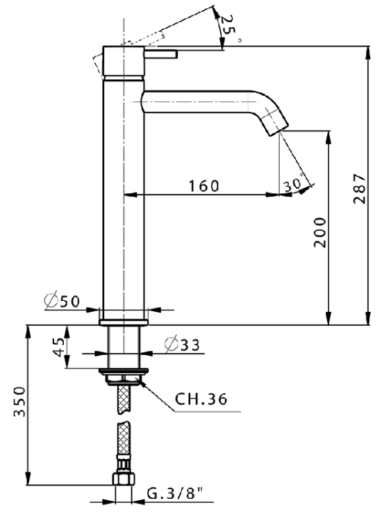 Смеситель для раковины, Cisal, Less New, высокий, тип открывания воды-однорычажный, отверстия для монтажа-1, высота, мм-287, вынос излива, мм-160, цвет-черный матовый Смеситель для раковины, Cisal, Less New, высокий, цвет-черный матовый