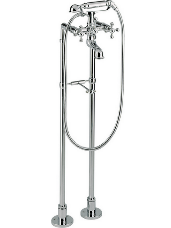 Смеситель для ванны, Cisal, Arcana Ceramic, тип открывания воды-двухвентильный, тип установки-напольный, отверстия для монтажа-2, вынос излива, мм-226, комплектация-ручной душ, держатель ручного душа, шланг, цвет-хром Смеситель для ванны, Cisal, Arcana Ceramic, цвет-хром