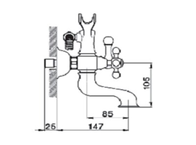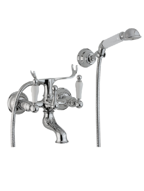 Смеситель для ванны и душа, Cisal, Arcana Toscana, тип открывания воды-двухрычажный, тип установки-настенный, отверстия для монтажа-3, вынос излива, мм-147, комплектация-ручной душ, держатель ручного душа, шланг, мм-1500, цвет-хром/керамика Смеситель для ванны и душа, Cisal, Arcana Toscana, цвет-хром/керамика