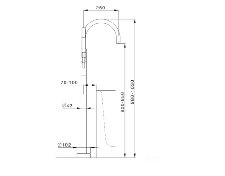 Смеситель для ванны и душа, Cisal, Nuova Less, тип открывания воды-однорычажный, тип регулирования воды-керамический картридж, монтаж-напольный, отверстия для монтажа-1, вынос излива, мм-260, тип излива-неподвижный, ручной душ-в комплекте, шланг-1500 мм, внутренняя часть-необходимо заказать, цвет-хром Смеситель для ванны и душа, Cisal, Nuova Less, цвет-хром