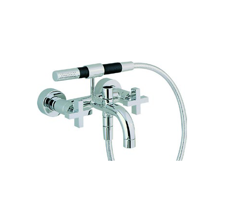Смеситель для ванны и душа, Cisal, Barcelona, тип открывания воды-вентильный, тип регулирования воды-керамическая кран-букса, монтаж-настенный, отверстия для монтажа-2, вынос излива, мм-188, ручной душ, шланг-в комплекте, цвет-хром Смеситель для ванны и душа, Cisal, Barcelona, цвет-хром