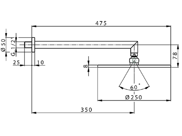 Верхний душ, Cisal, Shower, тип установки-настенный, ширина, мм-250, глубина, мм-250, форма-круглая, держатель-есть, размер держателя-350, цвет-Matt Black Верхний душ, Cisal, Shower, шг 250*250, цвет-Matt Black