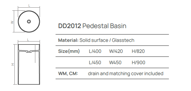 Раковина, DEA Design, Pedestal Basin, ширина, мм-450, глубина, мм-450, высота, мм-900, тип установки-напольный, отверстия для смесителя-отсутствуют, без перелива, материал-Glasstech, цвет-Smoky Black Раковина, DEA Design, Pedestal Basin, шгв 450*450*900, отверстия для смесителя-отсутствуют, цвет-Smoky Black