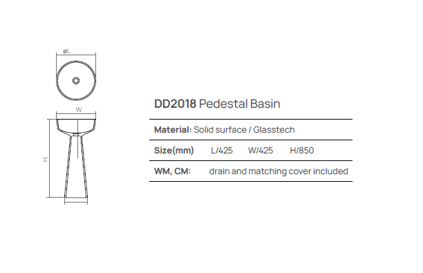 Раковина, DEA Design, Pedestal Basin, ширина, мм-425, глубина, мм-425, высота, мм-850, тип установки-напольный, отверстия для смесителя-отсутствуют, без перелива, материал-Glasstech, цвет-Sunset Раковина, DEA Design, Pedestal Basin, шгв 425*425*850, отверстия для смесителя-отсутствуют, цвет-Sunset
