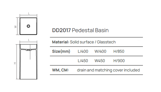 Раковина, DEA Design, Pedestal Basin, ширина, мм-450, глубина, мм-450, высота, мм-900, тип установки-напольный, отверстия для смесителя-отсутствуют, без перелива, материал-Solid surface, цвет-Grey Brown Раковина, DEA Design, Pedestal Basin, шгв 450*450*900, отверстия для смесителя-отсутствуют, цвет-Grey Brown