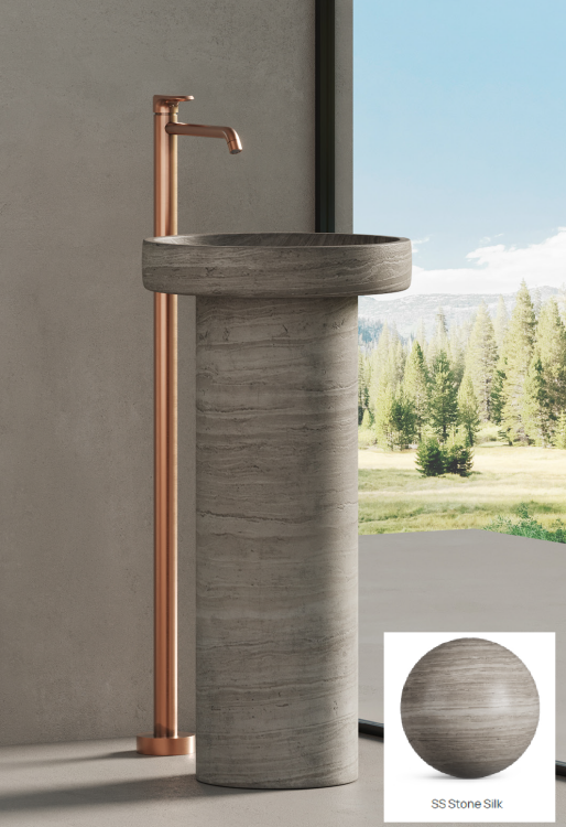 Раковина, DEA Design, Prato, ширина, мм-450, глубина, мм-450, высота, мм-900, тип установки-напольный, отверстия для смесителя-отсутствуют, без перелива, материал-мрамор, цвет-Stone Silk Раковина, DEA Design, Prato, шгв 450*450*900, отверстия для смесителя-отсутствуют, цвет-Stone Silk