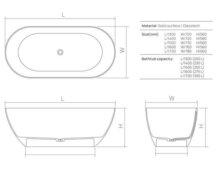 Ванна, DEA Design, Edge, ширина, мм-1700, глубина, мм-780, высота, мм-560, водоизмещение (л)-300, тип установки-отдельностоящий, форма-овальная, материал-Solid surface, цвет-белый матовый (Matt White, Bianco Opaco) Ванна, DEA Design, Edge, шгв 1700*780*560, цвет-белый матовый (Matt White, Bianco Opaco)
