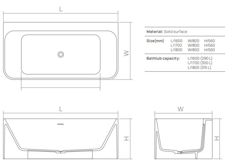 Ванна, DEA Design, Modern, ширина, мм-1600, глубина, мм-800, высота, мм-560, водоизмещение (л)-290, тип установки-отдельностоящий, форма-прямоугольная, панель-есть, материал-Solid surface, цвет-Dark Green Ванна, DEA Design, Modern, шгв 1600*800*560, цвет-Dark Green