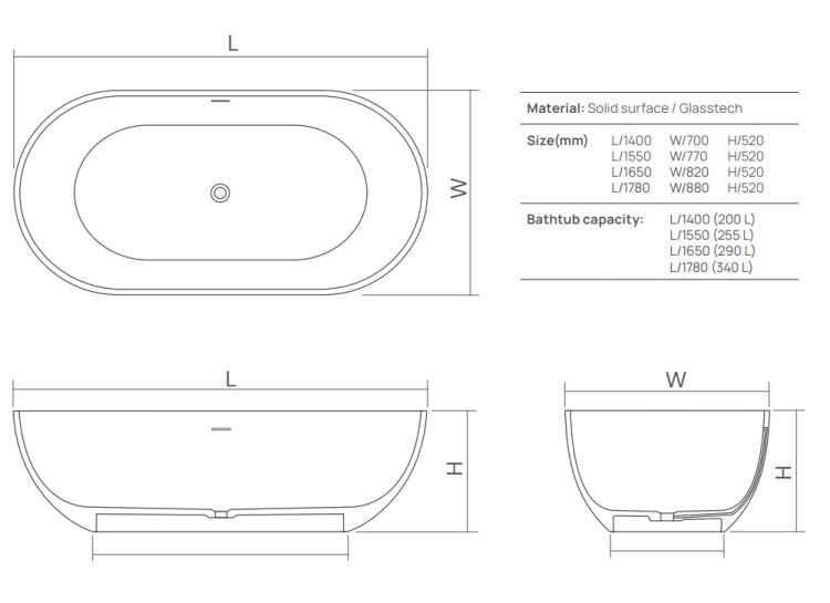 Ванна, DEA Design, Shadow, ширина, мм-1780, глубина, мм-880, высота, мм-520, водоизмещение (л)-340, тип установки-отдельностоящий, форма-овальная, материал-Glasstech, цвет-Smoky Black (дымчато-черный) Ванна, DEA Design, Shadow, шгв 1780*880*520, цвет-Smoky Black (дымчато-черный)