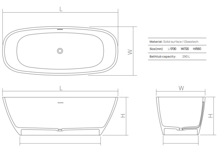 Ванна, DEA Design, Soul, ширина, мм-1700, глубина, мм-720, высота, мм-560, водоизмещение (л)-290, тип установки-отдельностоящий, форма-прямоугольная, материал-Glasstech, цвет-Classic Green Ванна, DEA Design, Soul, шгв 1700*720*560, цвет-Classic Green