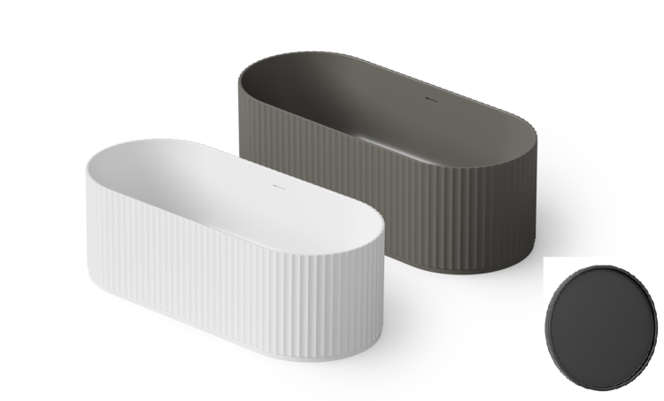 Ванна, DEA Design, Stripes, ширина, мм-1700, глубина, мм-720, высота, мм-560, водоизмещение (л)-310, тип установки-отдельностоящий, форма-овальная, панель-есть, материал-Solid surface, цвет-черный матовый Ванна, DEA Design, Stripes, шгв 1700*720*560, цвет-черный матовый