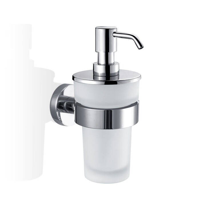 Дозатор для жидкого мыла, Decor Walther, Basic, WSP, механический (нажимной), ширина, мм-80, глубина, мм-100, высота, мм-180, ёмкость(мл)-230, тип установки-настенный, материал колбы-стекло матовое, цвет дозатора-хром Дозатор для жидкого мыла, Decor Walther, Basic, WSP, шгв 80*100*180, цвет дозатора-хром
