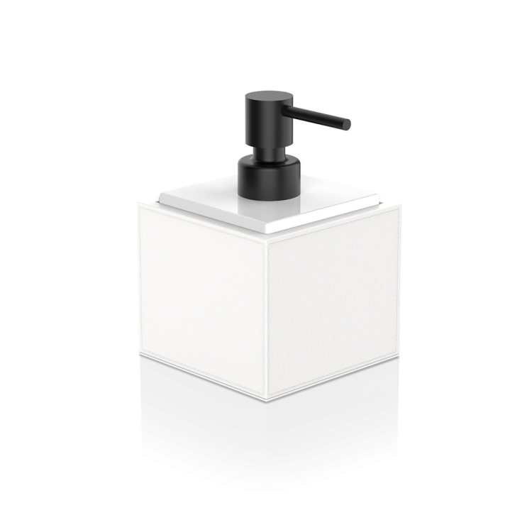 Дозатор для жидкого мыла, Decor Walther, Brownie, механический (нажимной), ширина, мм-99, глубина, мм-99, высота, мм-147, ёмкость(мл)-400, тип установки-настольный (свободностоящий), материал колбы-фарфор белый/искусственная кожа, цвет колбы-белый (имитация кожи), цвет дозатора-черный Дозатор для жидкого мыла, Decor Walther, Brownie, шгв 99*99*147, цвет-белый/черный