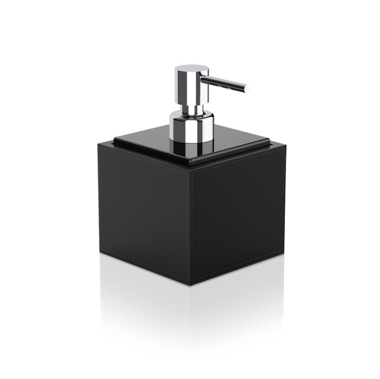 Дозатор для жидкого мыла, Decor Walther, Brownie, механический (нажимной), ширина, мм-99, глубина, мм-99, высота, мм-147, ёмкость(мл)-400, тип установки-настольный (свободностоящий), материал колбы-фарфор черный/искусственная кожа, цвет колбы-черный (имитация кожи), цвет дозатора-хром Дозатор для жидкого мыла, Decor Walther, Brownie, шгв 99*99*147, цвет дозатора-хром