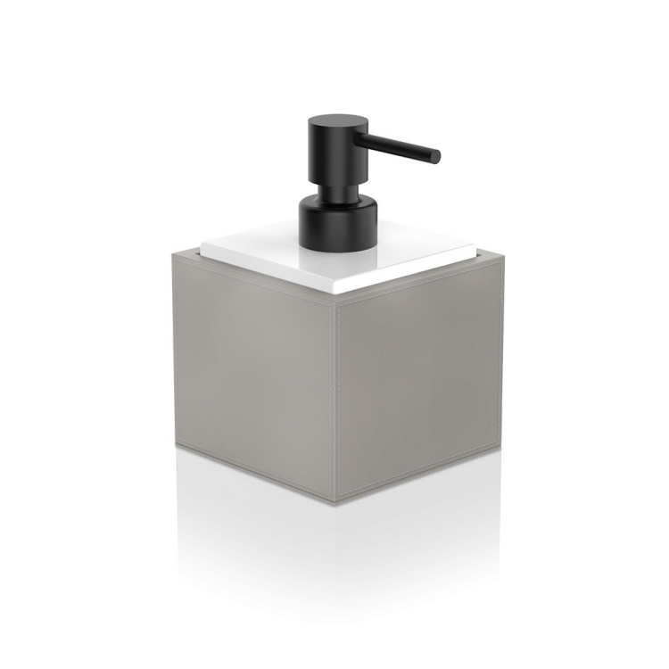 Дозатор для жидкого мыла, Decor Walther, Brownie, механический (нажимной), ширина, мм-99, глубина, мм-99, высота, мм-147, ёмкость(мл)-400, тип установки-настольный (свободностоящий), материал колбы-фарфор белый/искусственная кожа, цвет колбы-тауп (имитация кожи), цвет дозатора-черный Дозатор для жидкого мыла, Decor Walther, Brownie, шгв 99*99*147, цвет-тауп/черный