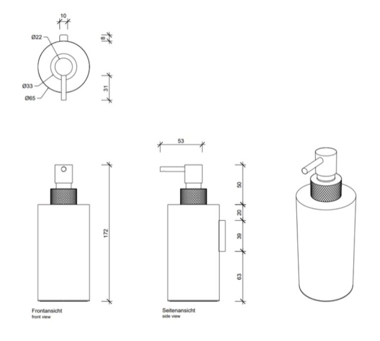 Дозатор для жидкого мыла, Decor Walther, Club, механический (нажимной), ширина, мм-60, глубина, мм-70, высота, мм-175, тип установки-настенный, материал колбы-латунь, цвет колбы-черный матовый, цвет дозатора-черный матовый Дозатор для жидкого мыла, Decor Walther, Club, шгв 60*70*175, цвет дозатора-черный матовый