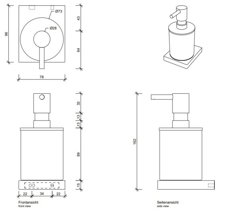 Дозатор для жидкого мыла, Decor Walther, Contract, механический (нажимной), ширина, мм-80, глубина, мм-110, высота, мм-160, тип установки-настенный, материал колбы-стекло, цвет колбы-матовый, цвет дозатора-сталь матовая PVD Дозатор для жидкого мыла, Decor Walther, Contract, шгв 80*110*160, цвет дозатора-сталь матовая PVD