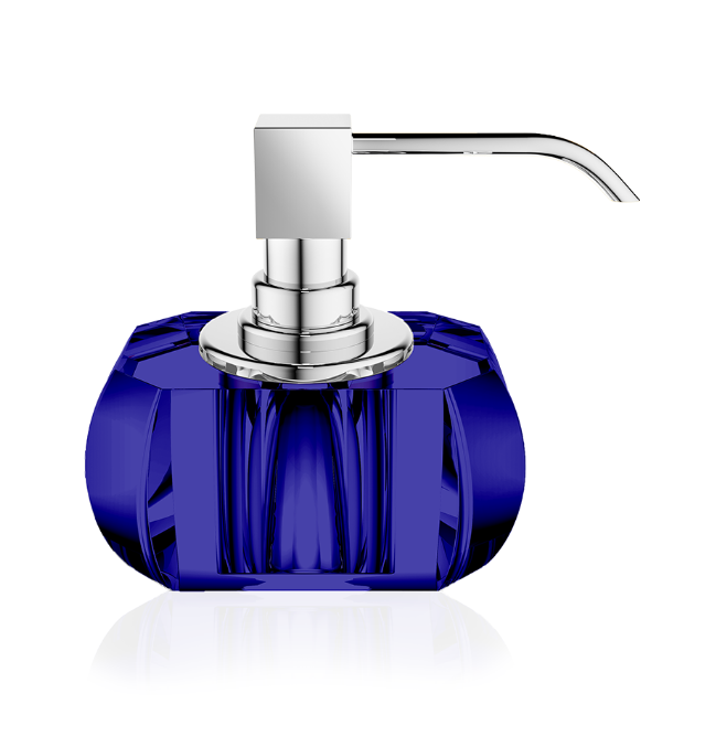 Дозатор для жидкого мыла, Decor Walther, Kristall, механический (нажимной), ширина, мм-120, глубина, мм-130, высота, мм-90, ёмкость(мл)-80, тип установки-настольный (свободностоящий), материал колбы-хрусталь, цвет колбы-Capri blue, цвет дозатора-хром Дозатор для жидкого мыла, Decor Walther, Kristall, шгв 120*130*90, цвет дозатора-хром
