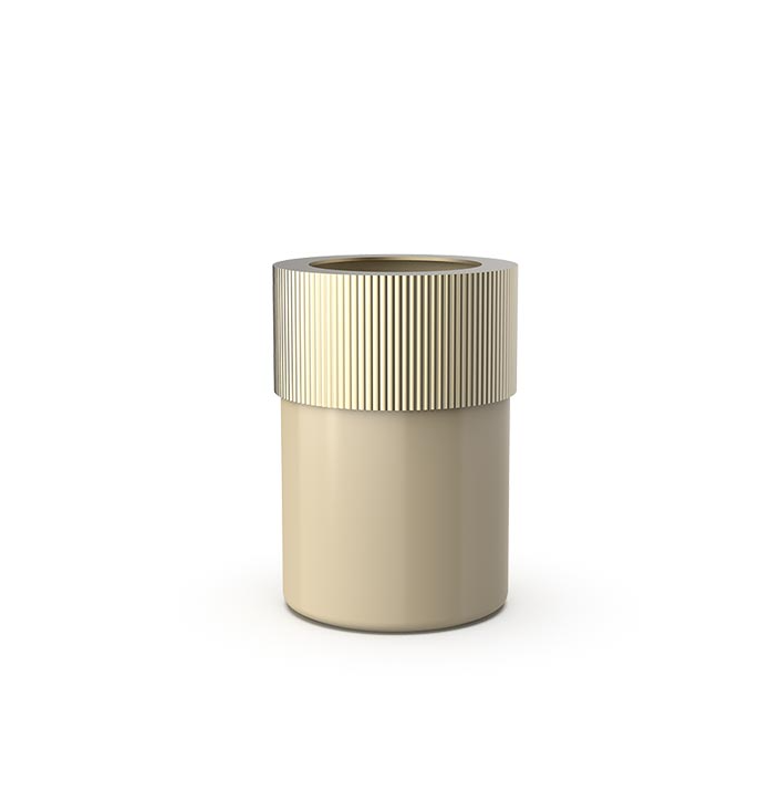 Корзина для бумаги, Decor Walther, Of.Line, без крышки, ширина, мм-212, глубина, мм-212, высота, мм-302, тип установки-настольный (свободностоящий), материал-алюминий/фарфор, цвет-Champagner/Dune Корзина для бумаги, Decor Walther, Of.Line, шгв 212*212*302, цвет-Champagner/Dune
