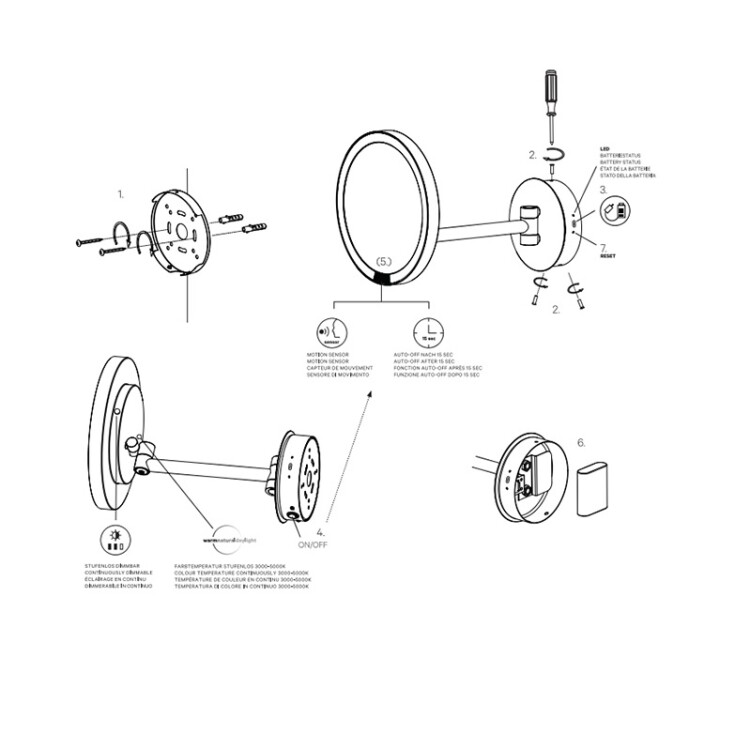 Косметическое зеркало, Decor Walther, JUST LOOK, круглое, размер зеркала (ш x в), мм-370*215, тип установки-настенный, с подсветкой, увеличение, х-5 раз, цвет-хром Косметическое зеркало, Decor Walther, JUST LOOK, с подсветкой, цвет-хром