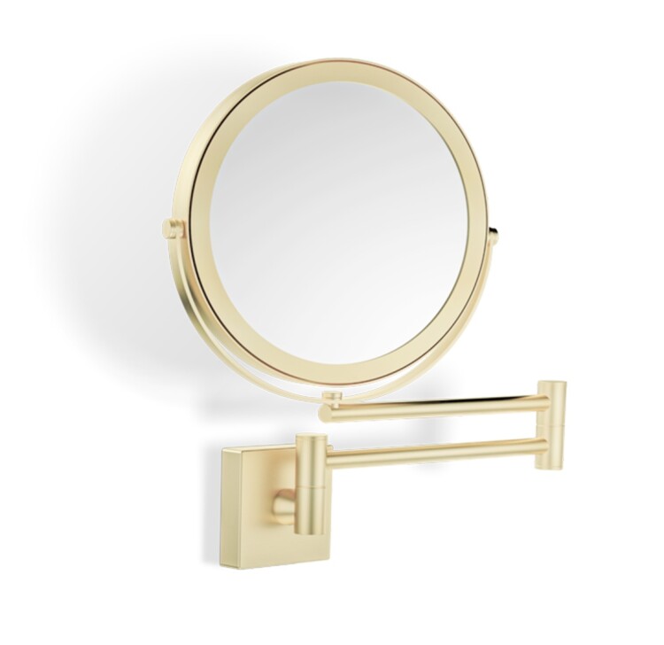 Косметическое зеркало, Decor Walther, SP 28/2/V, круглое, размер зеркала (ш x в), мм-170*170, тип установки-настенный, без подсветки, увеличение, х-5 раз, поворотное, цвет-золото матовое Косметическое зеркало, Decor Walther, SP 28/2/V, без подсветки, цвет-золото матовое