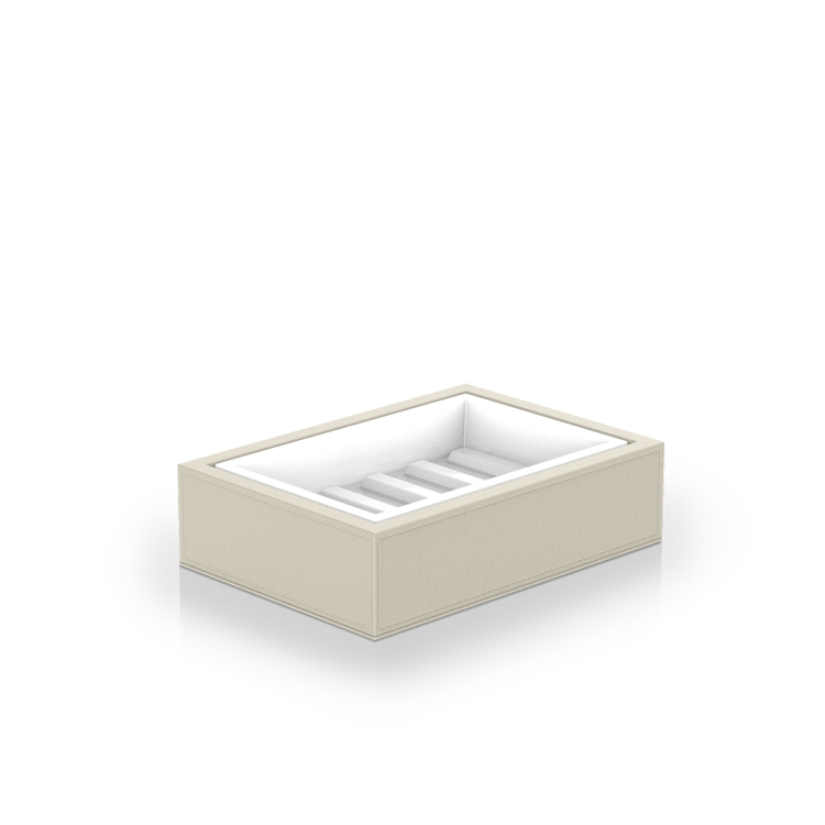Мыльница, Decor Walther, Brownie, STS, ширина, мм-130, глубина, мм-95, высота, мм-37, тип установки-настольный (свободностоящий), материал-искусственная кожа/керамика белая, цвет-песочно-бежевый Мыльница, Decor Walther, Brownie, STS, шгв 130*95*37, цвет-песочно-бежевый/белый