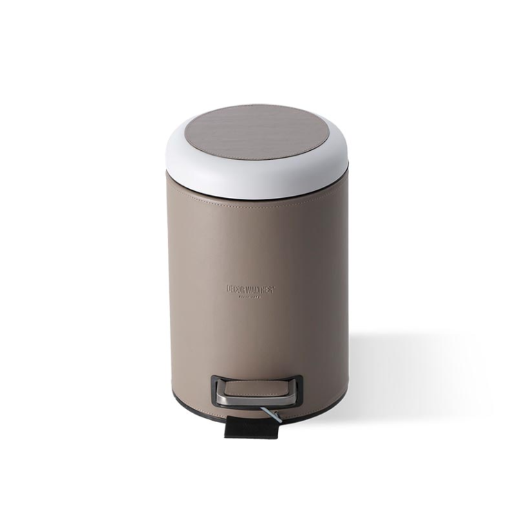 Ведро, Decor Walther, BASKET, с крышкой, с педалью-soft-close, ширина, мм-170, глубина, мм-240, высота, мм-260, ёмкость(л)-7, тип установки-напольный, материал-металл/искусственная кожа, цвет-тауп (имитация кожи) Ведро, Decor Walther, BASKET, шгв 170*240*260, цвет-тауп