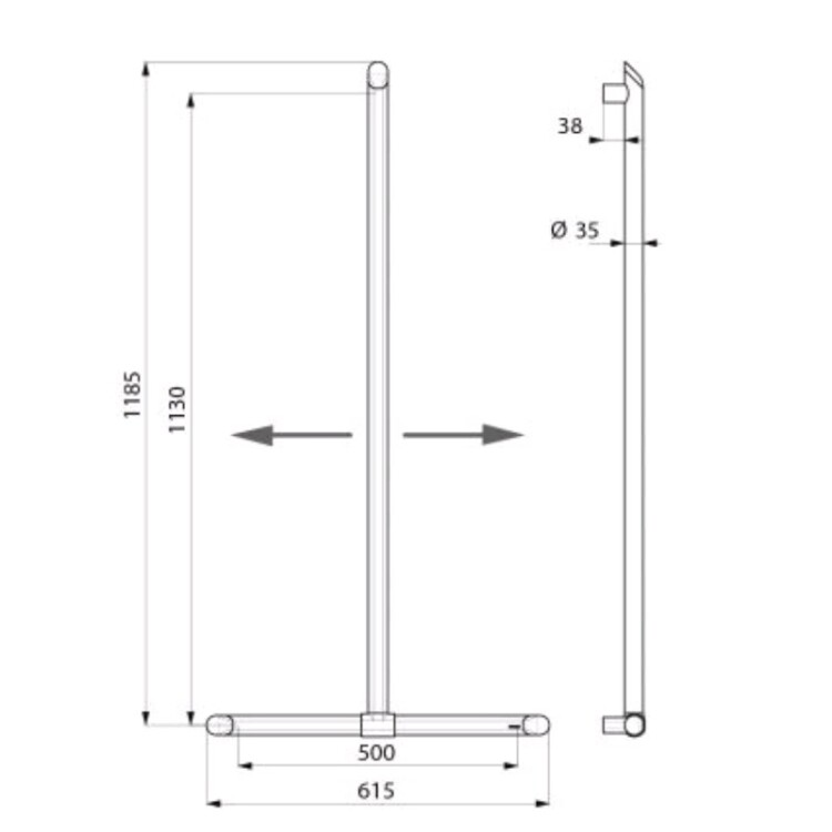 Поручень, Delabie, Be-Line, T-образный опорный, со скользящей вертикальной частью, ширина, мм-500, глубина, мм-38, Ø 35, высота, мм-1130, материал-алюминий, крепления в комплекте, цвет-антрацит (Antracite) Поручень, Delabie, Be-Line, T-образный опорный, шгв 500*38*1130, цвет-антрацит (Antracite)