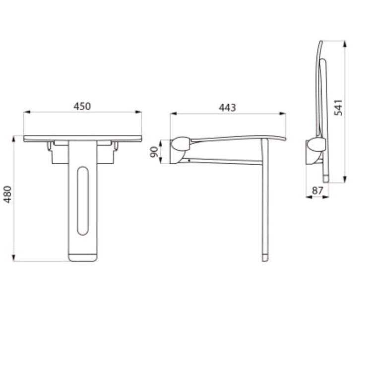Сиденье для душа, Delabie, Be-Line, съемное, откидное, ширина, мм-450, глубина, мм-443, высота, мм-480, тип установки-настенный, материал-пластик/металл, крепления в комплекте, цвет-белый/антрацит металлизированный Сиденье для душа, Delabie, Be-Line, шгв 450*443*480, цвет-белый/антрацит металлизированный