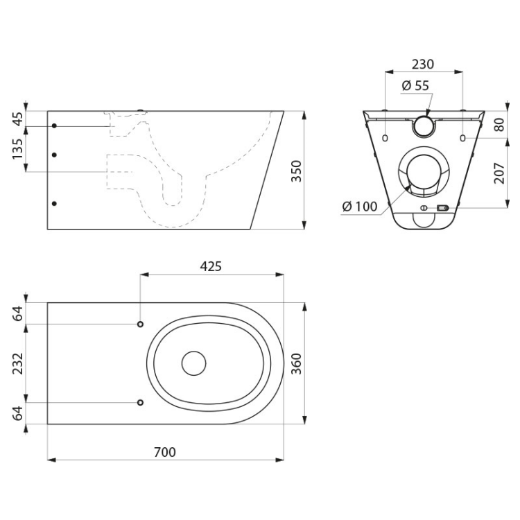 Унитаз, Delabie, 700 S, безободковый (с открытым смывным краем), тип установки-подвесной, ширина, мм-360, глубина, мм-700, высота, мм-350, форма чаши-овальная, выпуск-горизонтальный, материал-нержавеющая сталь, бачок-необходима система инсталляции, скрытый бачок, сиденье-необходимо заказать, цвет-черная матовая нержавеющая сталь Унитаз, Delabie, 700 S, подвесной, шгв 360*700*350, цвет-черная матовая нержавеющая сталь