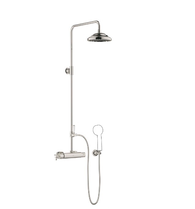 Душевая стойка, Dornbracht, Madison, смеситель-в комплекте, поворотный переключатель душевая стойка/ручной душ, верхний душ-есть, форма верхнего душа-круглая, размер верхнего душа-200, держатель верхнего душа-есть, вынос, мм-420, размер штанги, мм-1160, диаметр трубы,мм-20, ручной душ-в комплект не входит (необходимо заказать), шланг-есть, размер шланга, мм-1250, присоединение 1/2", цвет изделия-платина (Platinum) Душевая стойка, Dornbracht, Madison, цвет-платина