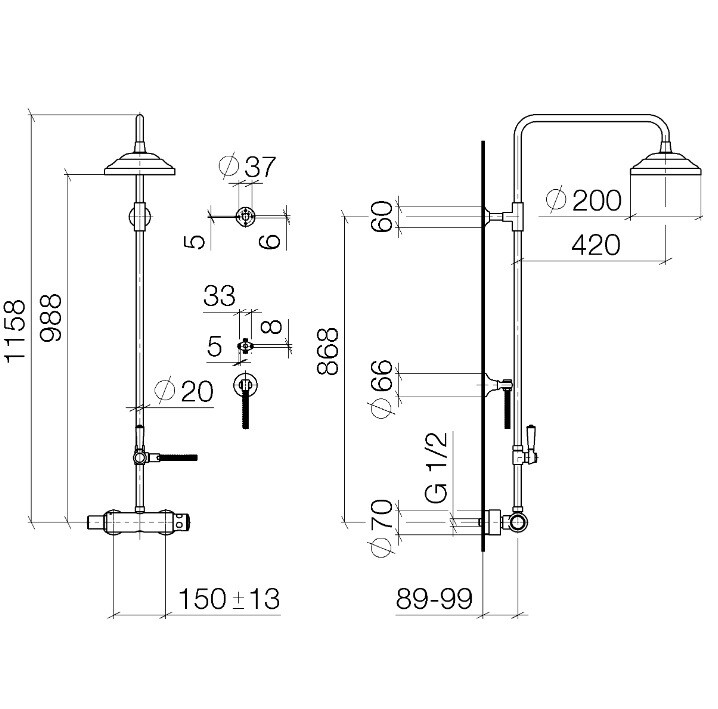 | Размер верхнего душа, мм | 200 |