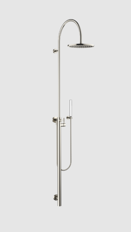 Душевая стойка, Dornbracht, Series specific, смеситель-в комплекте, тип открывания воды-однорычажный, верхний душ-есть, форма верхнего душа-круглая, размер верхнего душа,мм-300, держатель верхнего душа-есть, вынос, мм-450, количество режимов верхнего душа-1, ручной душ-необходимо заказать, шланг-есть, размер шланга, мм-1500, цвет-платина сатинированная Душевая стойка, Dornbracht, Series specific, цвет-платина сатинированная