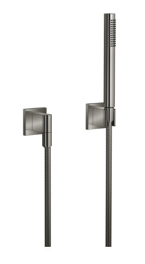 Душевой набор, Dornbracht, стержневой ручной душ с системой защиты от известковых отложений и предохранителем от обратного потока, отвод для душа 3/8", держатель для душа, розетка 60*60 мм, шланг для душа 3/8" x 1/2", длина 1250 мм, с вращающимся конусом, колено присоединительное настенное 1/2" с предохранителем от обратного потока, цвет Dark Chrome Душевой набор, Dornbracht, цвет-Dark Chrome