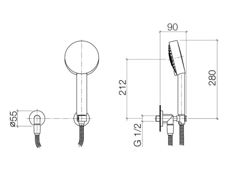 Душевой набор, Dornbracht, Tara, форма лейки-круглая, количество режимов-3, тип струи-нормальная, мягкая, массажная, держатель для душа-есть, шланг-есть, длина шланга, мм-1250, шланговое подключение-есть, цвет-черный матовый Душевой набор, Dornbracht, Tara, цвет-черный матовый