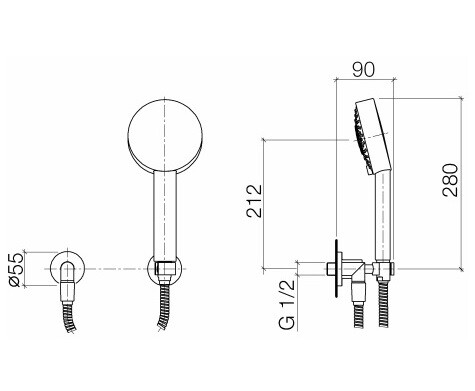 Душевой набор, Dornbracht, Tara, форма лейки-круглая, количество режимов-3, тип струи-нормальная, мягкая, массажная, держатель для душа-есть, шланг-есть, длина шланга, мм-1250, шланговое подключение-есть, цвет-хром Душевой набор, Dornbracht, Tara, цвет-хром